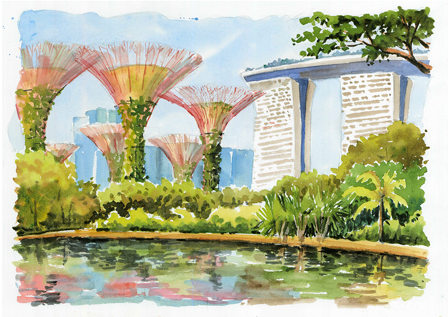 This painting brings them together in a single, softened moment—where nature and architecture meet, and Singapore reveals itself in balance.